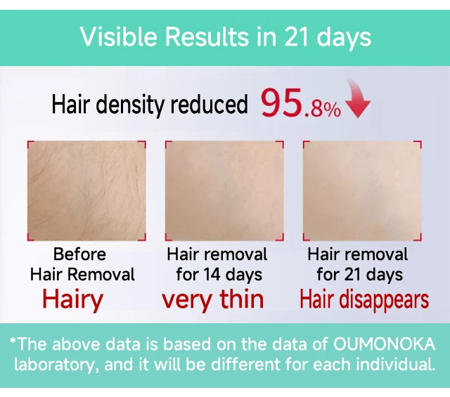 This epilator, unlike a razor, cannot remove your hair in minutes or days. These products do not act directly on your hair, but on your hair follicles. It destroys the hair follicles, and the hair follicles can no longer provide nutrition to the hair. The hair will die and fall out due to lack of nutrition, thus achieving the purpose of long-term hair removal. It requires long-term use to achieve results. Please use it for at least 1.5-2 months. If your hair is longer than 8mm, please use a razor to remove surface hair before using the instrument! People with strong, stiff hair usually take longer.
