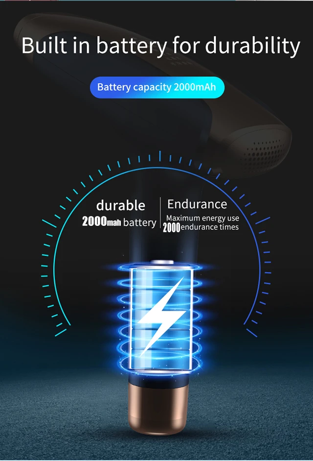 ⓵ The 2000mah built-in lithium battery can liberate the trouble of cables, and use the hair removal device to remove hair anytime and anywhere. Each full charge can use 2000 flashes, which can be used for about a month. Greatly improved the experience of using the hair removal device.